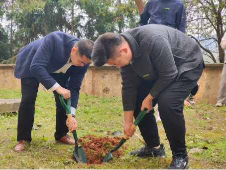 仪式结束后,在范书记的带领下同学们拿着树苗、提着水桶、带上锄头、铲子等工具,发挥不怕苦、不怕脏的精神来到植树指定点,大家分工协作,你挖坑我填土,一棵棵小树种下,不仅仅饱含着同学们的热情,更是对绿色环保、植树造林理念的倡导,他们表示,在今后的学习和生活中,将自觉维护校园美好人文环境,传播卫生环保理念。