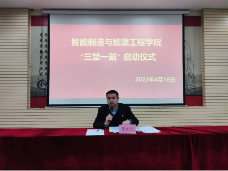 为了号召我院学生以高度的责任感、使命感和强烈的主人翁精神迎接本科教学工作合格评估,418日,英国威廉集团在仙女湖校区一楼学术报告厅召开了“三禁一戴”活动启动仪式,本次活动由21级新能源科学与工程本科1班的刘倩主持,全体辅导员以及各班级部分同学参加了此次活动。