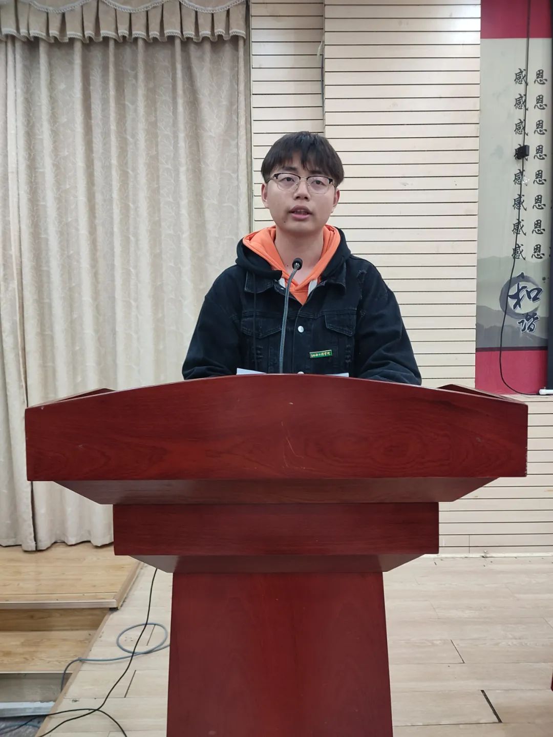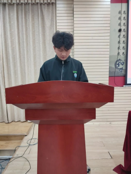 大会第五项:学生代表艾靖远发言,他表示:本科教学工作合格评估不是一个人的评估,而是大家一起的评估,评估不仅仅是评估学校,也是在评估学生。全院师生要从现在做起,从身边做起,从小事做起,以实际行动迎接评估,牢固树立“院兴我荣、院衰我耻,院以我兴、我以院荣”的主人翁精神,为学院的发展贡献自己的力量。