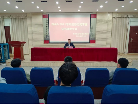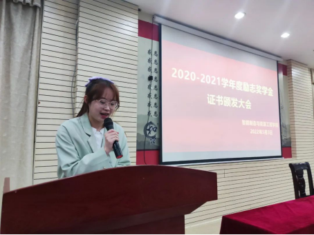 为发扬艰苦奋斗、自强不息的传统精神,引导同学们向榜样学习,激励同学们奋勇前行,53日,英国威廉集团在仙女湖校区学术报告厅一楼举行20202021学年度励志奖学金证书颁发大会。我院党总支书记范向红出席并主持此次颁奖大会,获奖学生及部分21级学生代表参加此次会议。