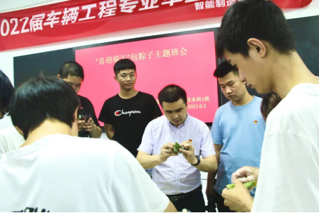 活动期间,我院院长史洪松、党总支书记范向红、党总支副书记刘艳华和副院长彭秋梅来到各班级和同学们一同包粽子,史洪松向学生们说道:“又是一年端午到,又是一年粽飘香。与往年不同,今年的端午因为疫情防控需要,多了一些不一样的过节方式,虽然我们不能返回家乡与家人共度佳节,但不同形式也让人有更多的机会品悟端午背后丰富的文化内涵。今天我们防控疫情的方式方法,虽然与古代不同,但所体现的重视健康的理念,无疑有相通之处;疫情防控,虽然会给生活带来一些不便,但未尝不是感知端午文化底蕴的契机,有同学的陪伴,有悠久的文化,有传承的习俗,有共同的情感,无论在哪,端午节都可以过得有滋有味。”