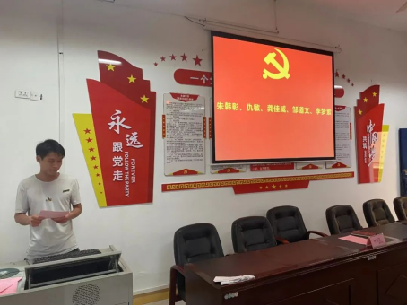 学生党支部书记钟丽花:首先,对朱韩彰、仇敏等5名成为预备党员的同学表示祝贺,预备党员必须明确目标,不忘母校恩泽,牢记时代使命,坚定不移的跟党走,为共产主义事业贡献自己的力量,从各个方面提升自己,为共产主义事业奋斗终生。五位同学同志思想积极进步,能主动向党组织靠拢。能积极学习习近平新时代中国特色社会主义思想,积极参加政治理论学习,有较高的理论水平。学习认真刻苦,成绩优秀。工作积极进步,能认真负责地完成老师交付的任务。生活中关心同学,能热情帮助有困难的同学,在群众中有较高的威望。