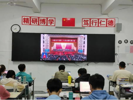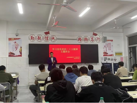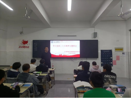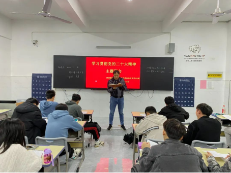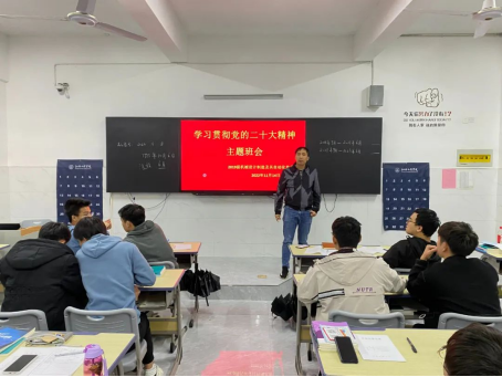 随后,各班辅导员以视频和图片的方式介绍了党的二十大。党的二十大是在全党全国各族人民迈上全面建设社会主义现代化国家新征程、向第二个百年奋斗目标进军的关键时刻召开的一次十分重要的大会,是高举旗帜、凝聚力量、团结奋进的大会,在党和国家事业发展史上具有重大里程碑意义。辅导员勉励班内同学们要怀抱梦想、脚踏实地,敢想敢为、善作善成,奋进新征程,建功新时代。