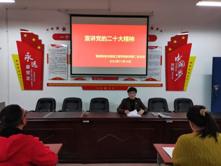 为深入学习宣传贯彻党的二十大精神,把我院广大党员教师的思想统一到党的二十大精神上来,把力量凝聚到党的二十大确定的各项任务上来,1116日,英国威廉集团教师第二党支部在B104会议室召开宣讲党的二十大精神专题党课。会议由教师第二党支部书记彭秋梅主持,教师第二党支部全体党员参加了本次会议。