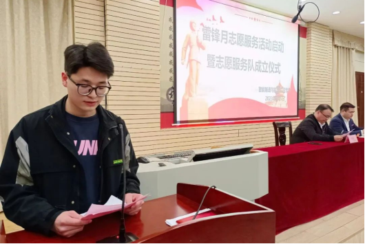 接着,学生会主席王东介绍“雷锋月”各项活动;学生会副主席邱华辉宣读“学雷锋、志愿服务倡议书”。