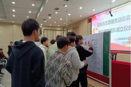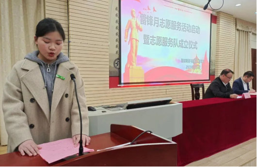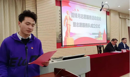 随后,范向红为志愿者服务队授旗,标志着学院雷锋志愿服务队正式成立。授旗仪式后我院青年志愿者协会会长郝雨杭带领全体与会青年志愿者庄严宣誓,在奉献社会中,实现自我价值。