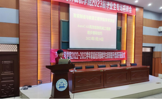 为了拓宽我院学生的专业视野、培养学生的学习积极性提升同学们的专业绘图能力,学院于2023320上午10:00邀请了李美玉副教授仙女湖校区第二学术报告厅举办了主题为AutoCAD高效绘制工程图的步骤及技巧的专题学术讲座,本次讲座由学院办公室主任游细辉主持,学院机械设计制造及其自动化、电气工程及其自动化专业共计100余名学生参加了此次讲座。