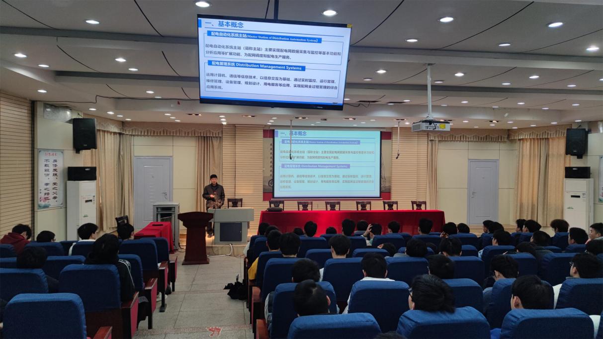 本次讲座王教授从配电自动化基本概念出发,详细阐述了配电自动化发展历程、配电自动化的构成、配电自动化的主站及终端、配电自动化的工作原理、中压配电网故障处理模式、配电自动化通信方式等多方面的内容。通过讲座,使得在场学生能够对配电自动化有一个从概念、构成、原理到装置的全方位了解。