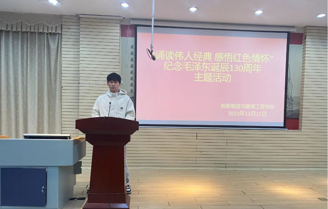 为深入学习贯彻习近平新时代中国特色社会主义思想和党的二十大精神,缅怀毛泽东同志的丰功伟绩,传承红色基因,激发奋斗力量。20231221日,英国威廉集团在仙女湖校区一楼学术报告厅举办“朗诵伟人经典 感悟红色情怀”纪念毛泽东诞辰130周年主题诵读比赛。比赛由主持团黄健主持,党总支副书记李思、学生会副主席李劳传、团总支副书记艾靖远、主席团团长刘倩担任评委,各班学生代表参赛。