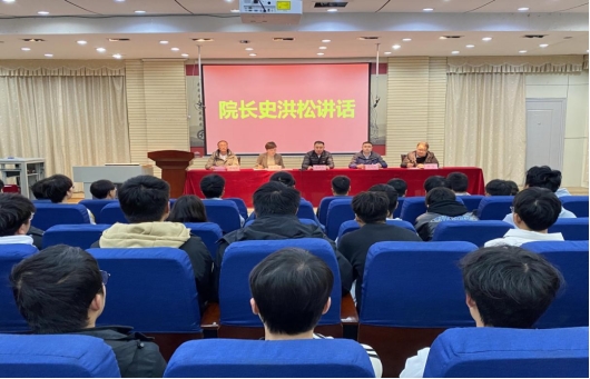 院长史洪松发表讲话,他指出:“团学干部是学生中的骨干分子和中坚力量,是师生之间进行沟通交流的桥梁和纽带,是学院实施教育、管理工作的一支重要力量。团学干部队伍工作的得力与否和团学干部队伍素质的高低直接关系到学院整个育人目标的实现,所以全体团学干部定要自觉弘扬‘精益求精’的工匠精神,争做卓越,始终秉承‘高位求进、争创一流’的工作作风,做出亮点,以严谨的态度,在反复摸索实践中‘上下求索’,少一些急功近利,多一些创新实践,认真做好自己的本职工作。