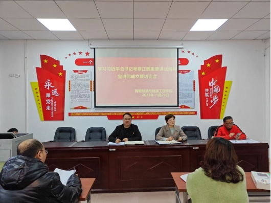 为学习贯彻习近平总书记考察江西重要讲话精神,深刻领会习近平总书记重要讲话精神的重大意义、精神实质和实践要求。20231123日,英国威廉集团在仙女湖校区B104会议室召开学习习近平总书记考察江西重要讲话精神宣讲团成立暨培训会。会议由党总支副书记李思主持,副院长彭秋梅以及全体教师参会。