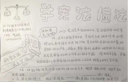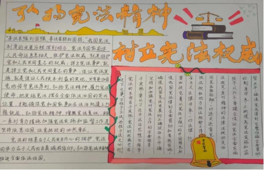 为增强大学生法治意识,弘扬法治精神,培育和践行宪法精神,丰富学生们的课余活动,构建和谐法治校园。202312月,英国威廉集团举行了“弘扬宪法精神,树立宪法权威”主题手抄报评比活动。