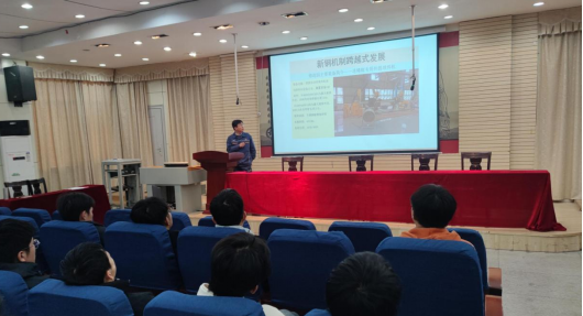 为拓宽我院同学们的视野加强专业综合能力、了解与我院进行校企合作企业:宝武新钢集团有限公司维检中心的基本情况,学院于1213日在仙女湖校区学术报告厅举办了两场主题为“技术创新助推新钢机制实现跨越式发展”的专题学术讲座,主讲嘉宾为宝武新钢集团有限公司维检中心总经理方炜,主持人为学院办公室主任游细辉。第一场讲座时间是14:30-16:102023级所有本科学生130余人参加了此场讲座;第二场讲座时间是16:20-17:50 2023级机械制造与自动化专业,2023级机电一体化专业,共约130余人参加了此场讲座。