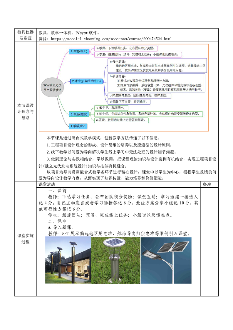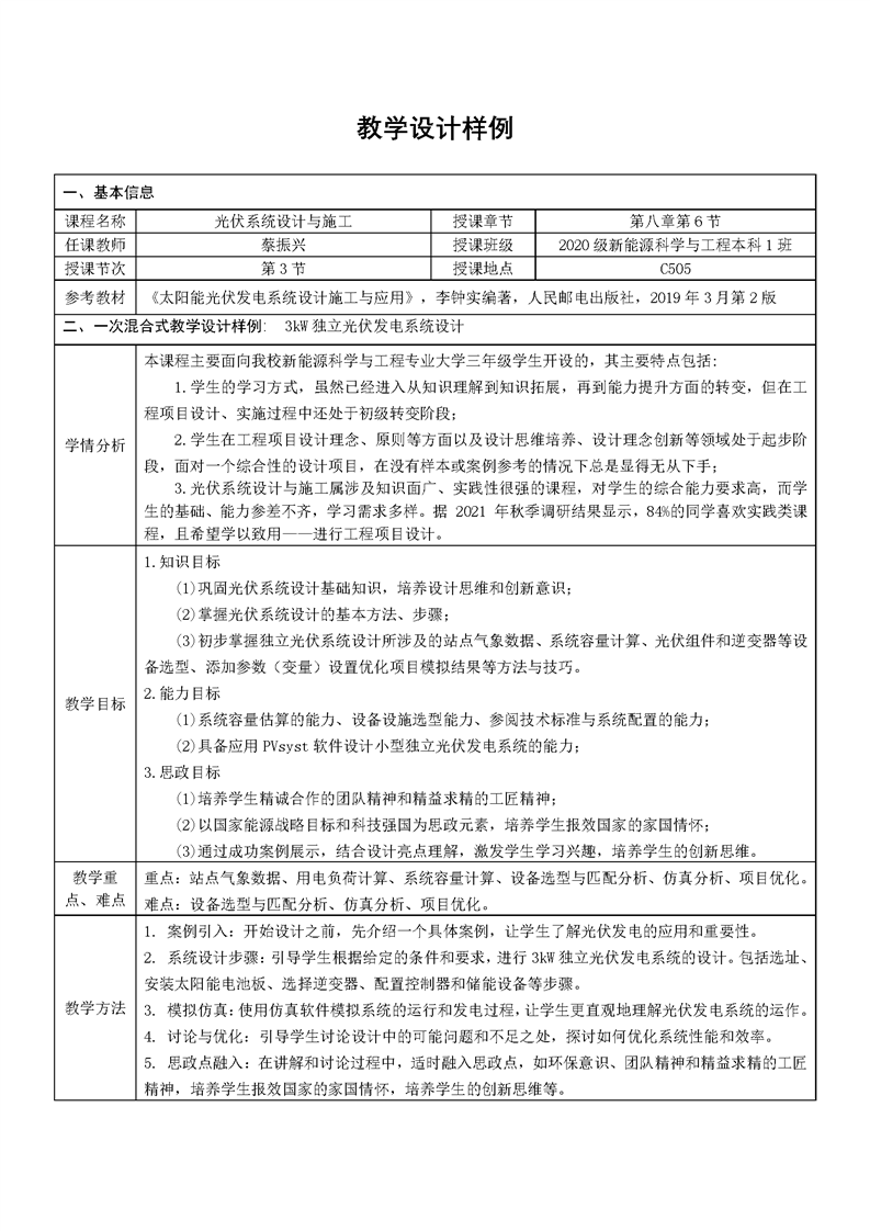 【“课程思政”示范课程】蔡振兴 《3kW独立光伏发电系统设计》教学设计样例