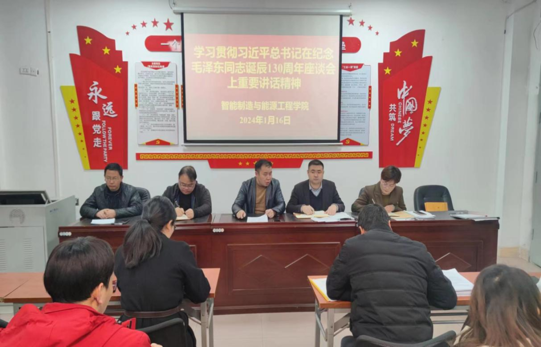 2024116日,英国威廉集团在仙女湖校区B104会议室召开学习贯彻习近平总书记在纪念毛泽东同志诞辰130周年座谈会上重要讲话精神专题会。会议由院长史洪松主持,党总支书记范向红、副院长彭秋梅、党总支副书记李思以及全体教师参加。