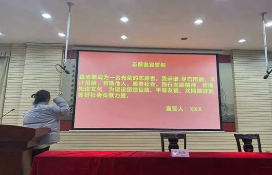 随后,范向红和李思为青年志愿者服务队授旗,标志着学院雷锋志愿服务队正式成立。授旗仪式后,我院青年志愿者协会会长龙彧带领全体与会青年志愿者庄严宣誓,在奉献社会中,实现自我价值。