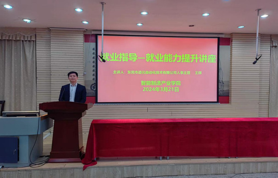 为更好地帮助2024届毕业生了解当前的就业形势,提高求职技能,明确职业规划。2024321日,智能制造产业学院在仙女湖校区一楼学术报告厅举办就业指导就业能力提升讲座。本次讲座邀请了东莞市道元自动化技术有限公司人事主管王辉主讲,2024届毕业生代表参加此次讲座。
