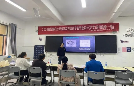 毕业设计(论文)是完成人才培养目标的重要实践教学环节,也是检验学生综合运用专业知识分析解决实际问题能力的重要依据之一。2024413日,智能制造产业学院2024届本科生毕业设计论文答辩工作在仙女湖校区C栋教学楼五楼举行。本次毕业设计(论文)答辩分为六个小组,共计140余名学生参加答辩。各毕业设计指导老师担任评委,院长史洪松、副院长彭秋梅对每个答辩现场进行观摩指导。