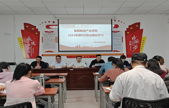 2024年6月5日,智能制造产业学院在仙女湖校区B栋104会议室召开2024年第9次政治理论学习会。会议由党总支书记范向红主持,院长史洪松、副院长彭秋梅、党总支副书记李思及全体教师参加会议。