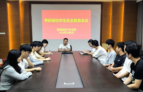 为进一步确保暑期留校考研学生的学习、生活安全平稳有序。202476日,智能制造产业学院在仙女湖校区A103会议室召开考研留校学生安全教育会议,会议由院长史洪松主持,党总支书记范向红、副院长彭秋梅以及全体考研留校学生参加会议。