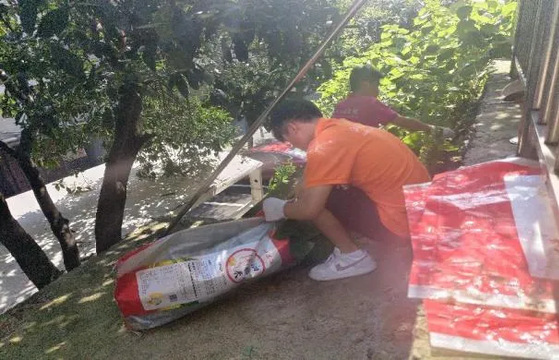 在当天上午的活动中,实践队成员们佩戴好装备,分队跟随社区工作人员前往需要清理的区域,实践队成员们不畏高温酷暑、不怕累、不怕脏,对社区路边的杂草、垃圾、烟头进行了清理,将社区中堆积杂物的区域进行了清扫,大家分工协作,各司其职,干劲十足。经过大家的努力,社区被整理的干净整洁。清扫社区的同时,实践队成员们还向社区居民宣传建设文明社区的相关知识,引导居民共同参与社区环境整治,美化自己的家园。