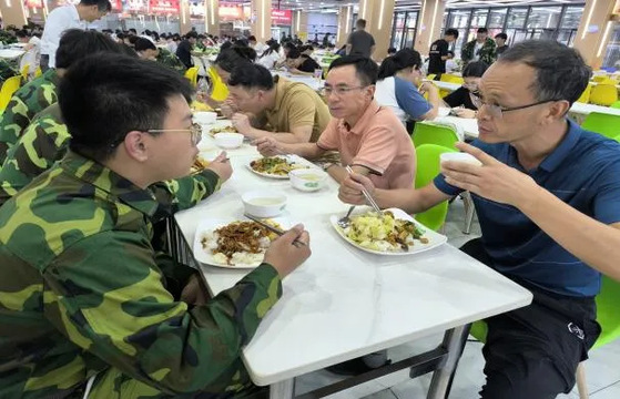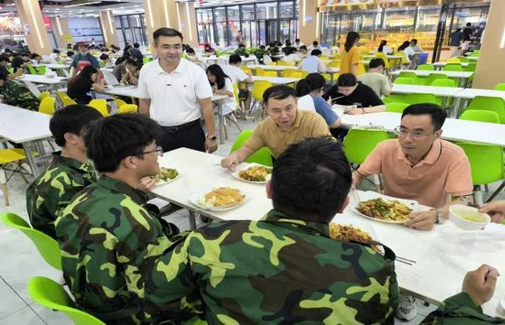 走访结束后,刘副校长提出要和新生们一同前往食堂吃晚饭,考察食堂的就餐环境和菜品价格。在吃饭过程中,刘副校长依旧在关心新生们是否能习惯学校内的饭菜,并询问新生们对食堂菜价有何看法。