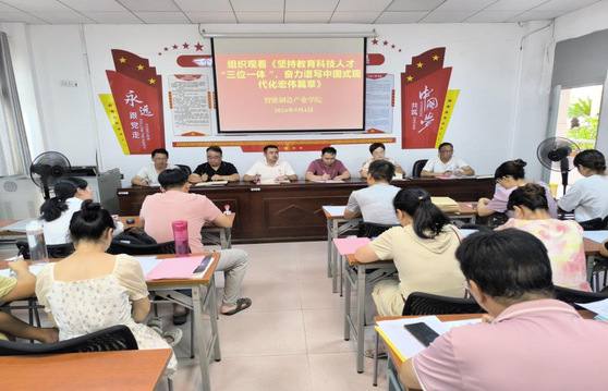 为进一步加强我院教师队伍的素质建设,增强我院全体教师的责任感和使命感。202494日,智能制造产业学院组织全体教师在仙女湖校区B104会议室共同观看《坚持教育科技人才“三位一体”,奋力谱写中国式现代化宏伟篇章》示范微党课。