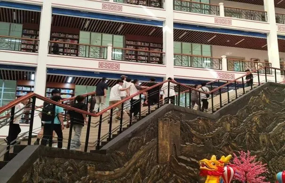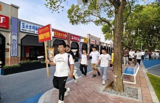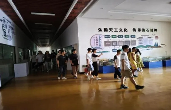 参观学生队伍在参观完江工文创街后便依次前往了新文科实训中心、天工开物园、一站式服务中心,随后在江工校区体育馆门口一同乘车前往了仙女湖凤凰湾、仙女湖老码头七夕老街。