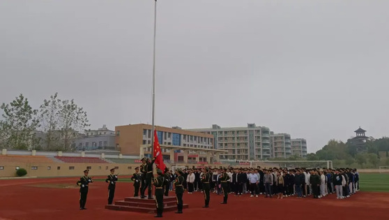 院长史洪松在国旗下发表讲话。史洪松表示,希望同学们树立远大的理想和目标。要有为国家、为民族、为人类作出贡献的胸怀和志向。在学习和生活中,不断挑战自我,超越自我,努力成为行业的佼佼者。史洪松的声音铿锵有力,每一个字都充满了力量和智慧,他的话语如同春风化雨,滋润着在场每一个人的心田。他强调,作为新时代的青年,同学们要肩负起历史的重任,为实现中华民族的伟大复兴而努力奋斗。