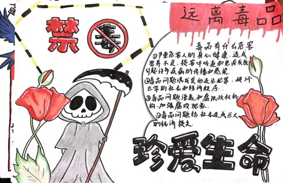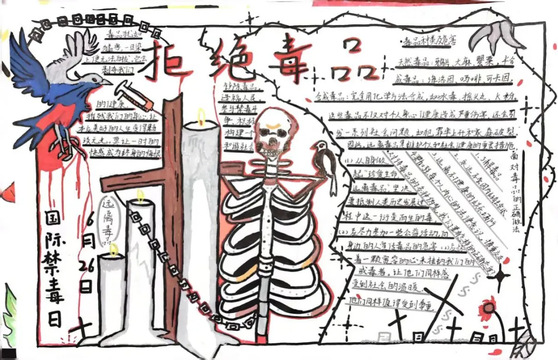 毒品是人类社会的公害,本次活动致力于让学生认真学习禁毒知识,认清毒品危害,懂得防范和拒绝毒品。在此次活动中,同学们以自己的想法绘制出一张张精美的手抄报作品,将毒品的种类,毒品的危害以及禁毒的重要性融入了自己笔下绚丽的色彩当中。每一幅作品都包含着同学们对禁毒活动的重视,同时也呼吁大家积极参与禁毒活动,共同抵制毒品。