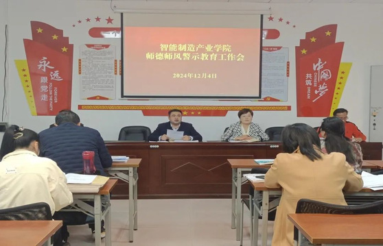 为进一步弘扬教育精神,切实加强师德师风建设,增强教师职业使命感和责任感,保障学生的合法权益与身心健康发展。2024124日,智能制造产业学院在仙女湖校区B104会议室召开师德师风警示教育工作会,本次会议由党总支书记范向红主持,副院长彭秋梅以及全体教师参加。
