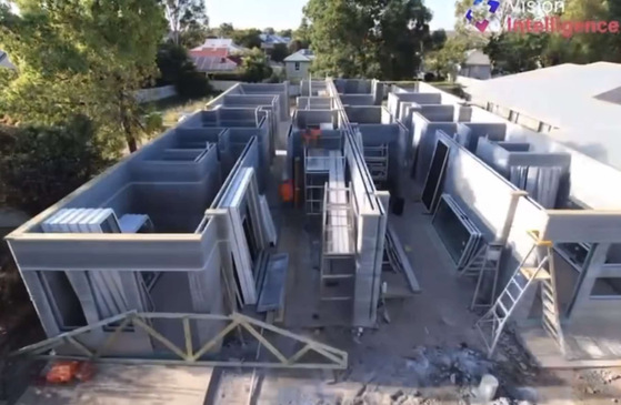 ASH集团最近在社交媒体上表示,3D打印复式公寓屋顶的桁架已于上周安装完毕。这些梁在运输到达博的施工现场之前进行了预组装,并使用起重机将桁架吊到混凝土3D打印结构上。集团的Aboriginal Sustainable Homes团队表示,它们一直在确保每个桁架都对齐并牢固地固定在3D打印框架上,以确保屋顶为下一阶段的施工做好准备。