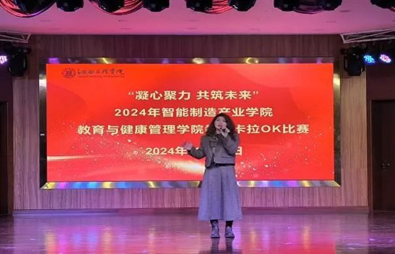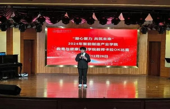 为丰富教师业余文化生活,展示我院教师风采,增强团队凝聚力,打造和谐向上的校园文化氛围。2024年12月26日,智能制造产业学院和教育与健康管理学院在天工校区四楼音乐厅联合举办“凝心聚力,共筑未来”教师卡拉OK比赛。此次比赛由智能制造产业学院党总支书记范向红,党总支副书记李思,教育与健康管理学院党总支书记刘永东,党总支副书记张沁担任评委,由智能制造产业学院团总支学生会成员章徵鸿和黄佳莉担任主持人,智能制造产业学院与教育与健康管理学院的全体教师参加了本次活动。