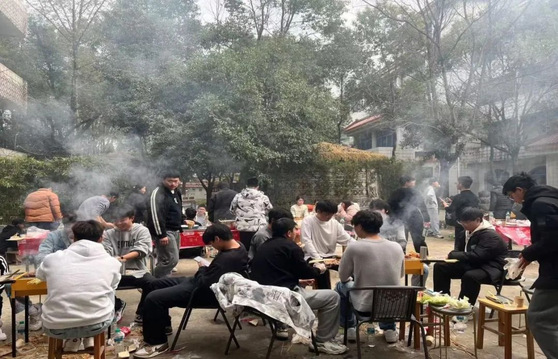 在户外烧烤的环节,同学们围聚在烧烤架旁,噼里啪啦,青烟升腾,香气浓郁,各种食材的烤串在炭火中不停翻动,滋滋作响,香喷喷,美滋滋,烧出快乐,烤出精彩,人间烟火气,无处不生香。通过参与各种游戏,同学们在面临挑战和压力时能够更好地调整自己的心态,增强自信心和抗压能力。在完成任务的同时,同学们分工合作,发挥自己的优势,也进一步增强了团队的凝聚力和培养了合作精神。