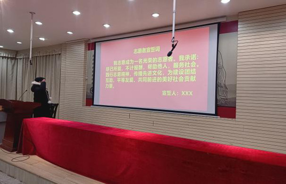 青年志愿者协会会长龙彧带领全体志愿者宣誓。他们的语调坚定而庄重,言辞之间,凸显出志愿者们的活力、干劲。