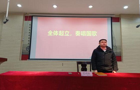 全体起立,奏唱国歌。随着国歌响起,同学们用那铿锵有力的歌声,彰显着对党与国家的热爱,展现出勇往直前的气魄。