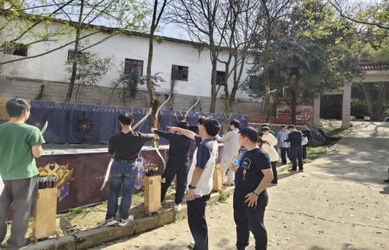 合影之后,2024级机械设计制造及其自动化专业的班委们迅速组织同学们开展了一场意义非凡的户外素质拓展活动。射箭时,有的同学站在箭靶前,专注地拉弓搭箭,箭矢离弦,划出一道道优美的弧线。射中靶心的同学欢呼雀跃,没射中的也毫不气馁,互相交流经验。蒙眼摸球环节,大家戴上眼罩,原地转几圈后,小心翼翼地摸索着向前走,去寻找地上的球。现场充满了欢声笑语,有的同学摸到球后兴奋不已,有的则在摸索中撞到同伴,引得大家哈哈大笑。整个活动现场气氛紧张又热烈,充满了欢乐与活力。