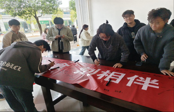 紧接着,志愿者与师生们一起在“安全‘食’刻相伴,平安‘味’来同行”横幅上进行签名。签名活动结束后,志愿者们向师生宣传了安全知识。