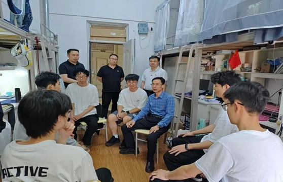 刘德华来到智能制造产业学院仙湖4A502学生宿舍,与同学们深入交流。他细心观察了同学们的居住环境,并询问了他们在生活、学习等各方面情况。他希望各宿舍的同学能够友好相处,在生活中互帮互助,寝室长能起到带头作用,带领舍友保持干净整洁的寝室卫生,共同营造舒适温馨的居住环境。