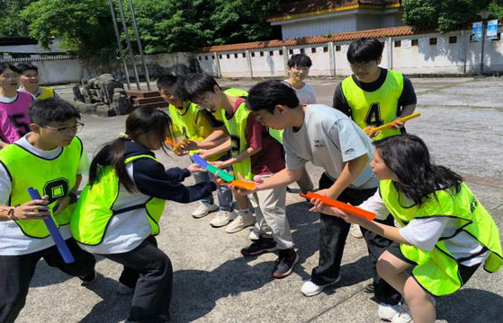 活动开始,本次活动设有“千里传珠”“同心击鼓”和跳绳三个游戏环节,通过精心设计的游戏激发同学们的团队精神。同学们积极参与其中,现场气氛热烈,同学们欢声笑语不断。这些游戏不仅考验了大家的协作能力,还增强了团队成员之间的信任感和责任感。