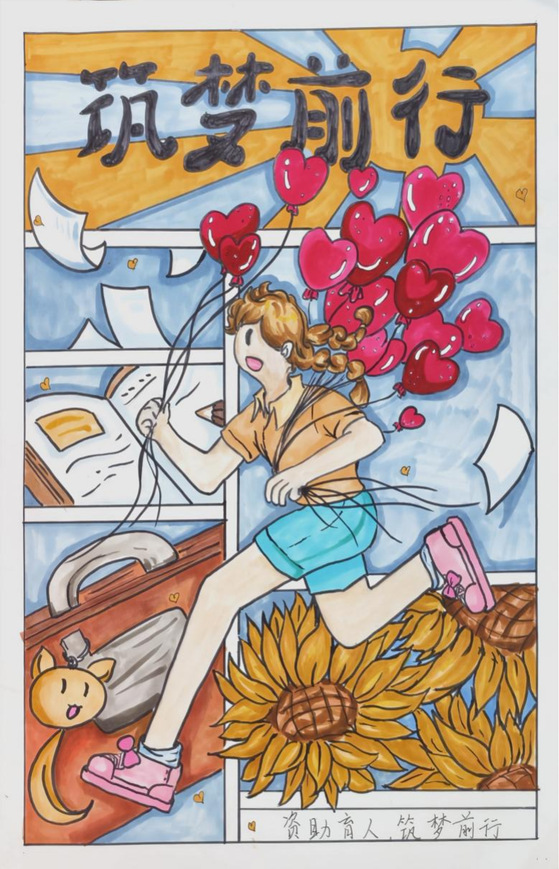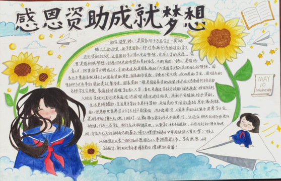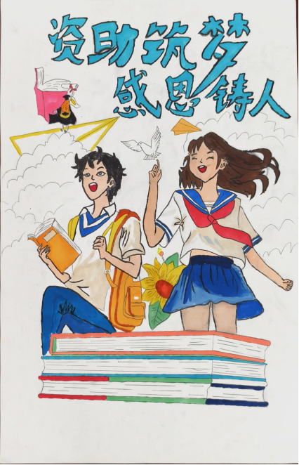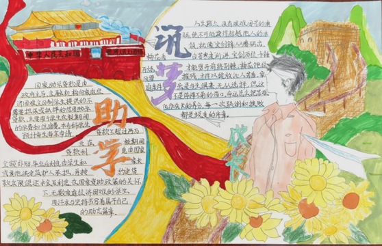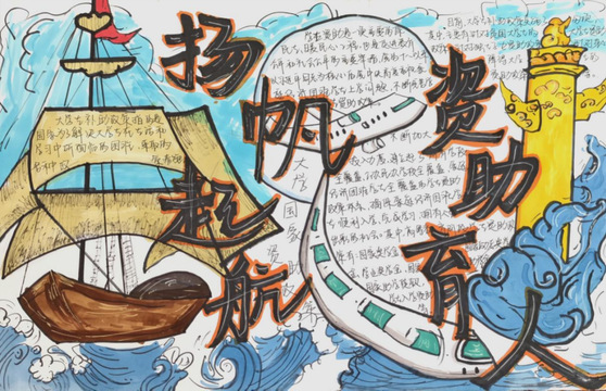 在参与活动的过程中,同学们能够在一笔一划中感受到国家和学校的关怀,培养坚韧不拔、感恩奋进等品质,提升社会责任感。学生以“助学·筑梦·铸人”为主题,通过自行查阅资料绘制手抄报,在绘制过程中同学们都认真对待,创作的作品主题鲜明,字体端正清晰,内容切合主题。
