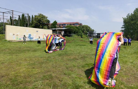 讲解结束后,同学们开展了一场充满趣味的户外团队活动。在无敌风火轮的活动中,同学们分为两组,需要齐心协力推着牛津布前进到终点处。在比赛中,同学们不断调整步伐和节奏,努力让队伍保持平稳前进。最后,在同学们的欢声笑语中活动完美落幕。