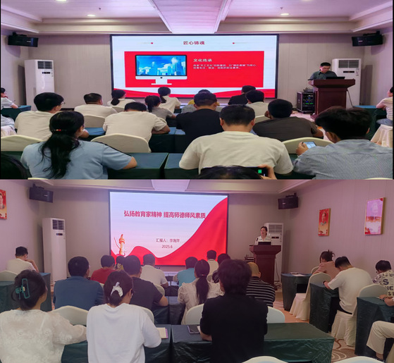 621日上午谭小波老师解读“北斗星・智造”党建品牌,以“精机善械,匠心铸魂”为核心,构建“思政、产教、科创、实践、学风”五大融合体系,旨在培养具备红色基因的“红匠”人才;随后李海萍教授围绕教育家精神展开了一场精彩讲座。她结合黄大年、张桂梅等杰出教育家的典型案例,深刻阐释了新时代教师所肩负的使命与担当。李教授强调,应以六大核心要义为指引,全面涵养师德师风,坚决杜绝任何师德违规行为,并引导教师从价值观塑造、职业道德提升等多维度,不断提升育人能力。