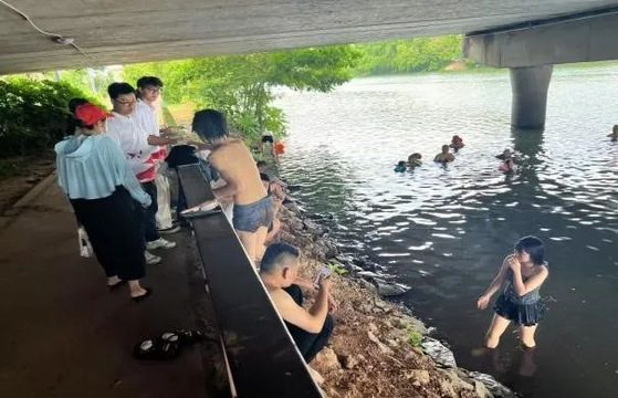 下午,正夏日炎炎,河边成了人们消暑的好去处,欢声笑语此起彼伏。然而,随着玩水人群的增多,溺水风险也悄然上升。实践队员们的主要任务是跟随社区工作人员沿着河边进行巡逻,保障玩水人群的生命安全。