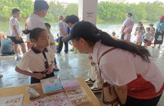 为了提高大家的防溺水意识,队员们精心策划了一场别开生面的宣传活动。队员们在河边设置了宣传点,摆放着各种精心准备的精美礼品,如定制的防溺水宣传手册、精美的本子等。这些小礼品虽不昂贵,却承载着队员们满满的用心。队员们热情洋溢地向过往市民介绍活动规则:“只要您能背诵防溺水“六不准”原则,就可以免费领取一份精美礼品!”这一创意十足的形式,瞬间吸引了众多市民的目光,大家纷纷停下脚步,好奇地围了上来。在巡逻过程中,队员们一边提醒人们注意安全,一边鼓励更多的人参与背诵活动。他们穿梭在人群中,用真诚和热情感染着每一个人。