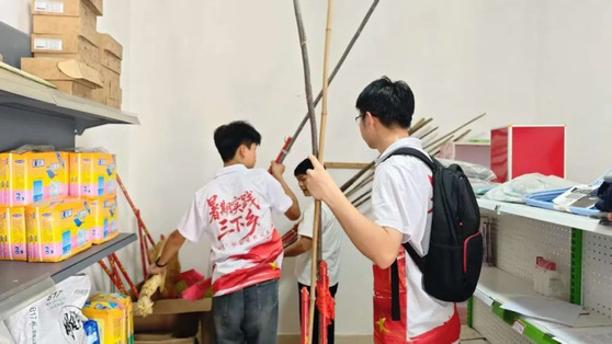 除了付出劳动,实践团还精心准备了慰问物资。同学们将承载着浓浓情谊的补助品一一送到每位老人手中。物资虽不贵重,却饱含着年轻学子对长者的深深敬意与关爱。在发放过程中,同学们态度谦和,耐心询问老人们的近况,表达着真诚的问候与祝福。物资的传递,传递的更是社会对老年群体的关注与温暖。针对当前电信网络诈骗高发、老年人信息辨别能力相对较弱的情况,本次活动特别增设了“智慧助老”环节。赤翼团队成员化身“反诈宣传员”和“手机辅导员”为老人们科普知识,答疑解惑。
