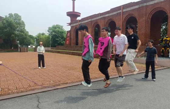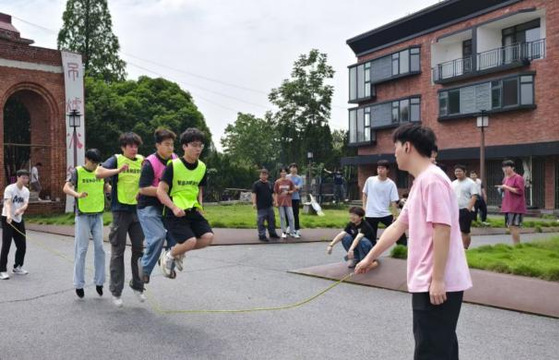 研讨会结束后,同学们移步至户外场地,一场充满活力的活动正式拉开帷幕。跳绳时,众人一个个精神抖擞,跃跃欲试。长绳在空中划出一道道优美的弧线,伴随着“嗖嗖”的风声,节奏明快而有力。在这简单的活动中,同学们感受到了团结的力量,也体会到了合作的乐趣。