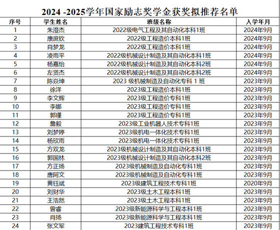 2024—2025学年国家励志奖学金拟推荐结果公示