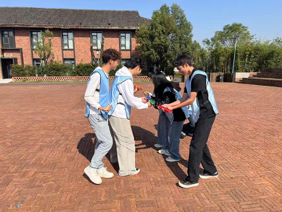 随后,户外拓展活动拉开帷幕,在同心击鼓项目中,9名同学协力控制鼓面颠球,领悟团队协作的平衡之道;珠行万里挑战中,乒乓球在弯曲管道中精准传递,培养专注力与抗压能力。辅导员李磊磊全程参与指导,引导同学们将活动感悟转化为专业学习的动力。